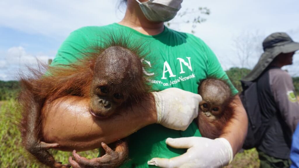 “Biasanya orangutan jarang mau turun ke tempat rendah. Tapi ibu dan anak ini seperti menyerahkan diri. Mereka turun ke tanah, tempat yang sama sekali tidak ada pohonnya. Pasrah,” kenang Paulinus Kristanto dari CAN.