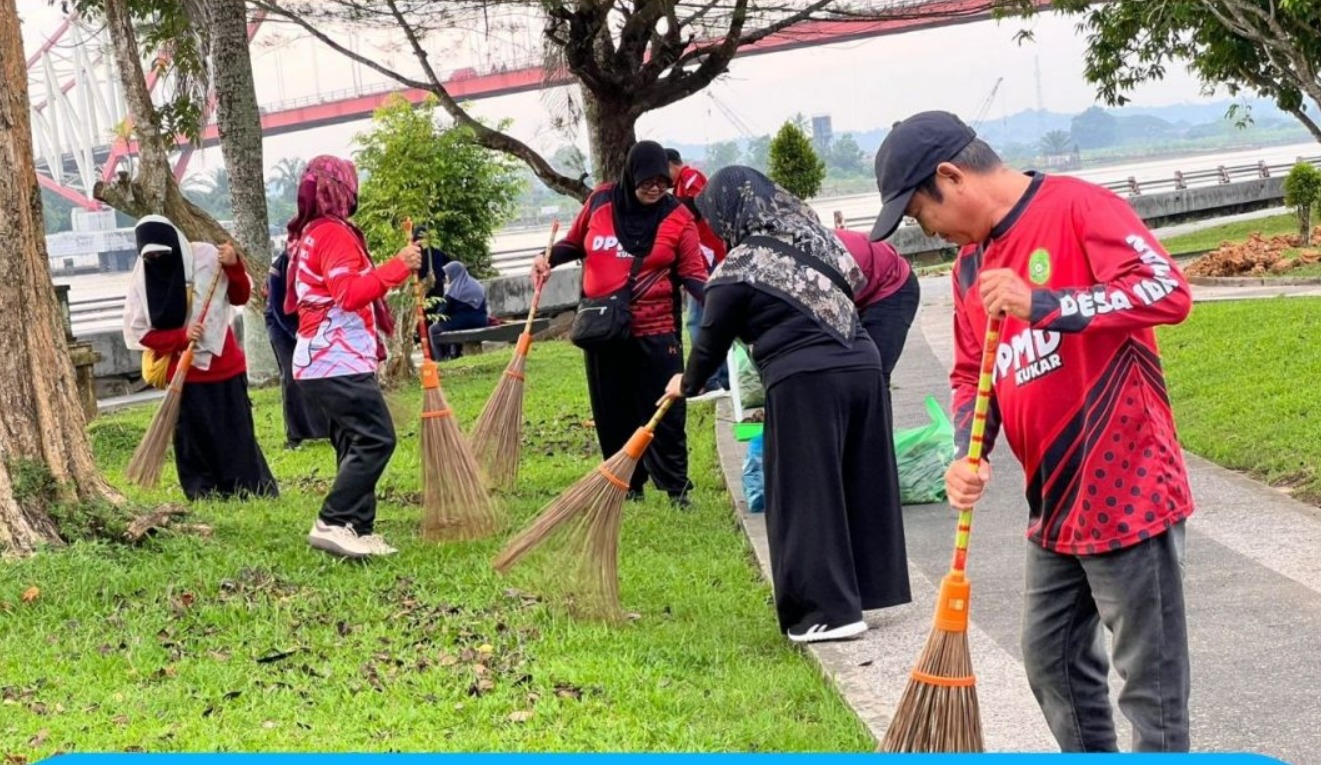TENGGARONG — Peringatan Bulan Bhakti Gotong Royong Masyarakat (BBGRM) ke-22 di Kutai Kartanegara ditandai dengan aksi bersih-bersih di Taman Enggang, Minggu (20/7/2025). Kegiatan ini diprakarsai oleh Dinas Pemberdayaan Masyarakat dan Desa (DPMD) Kukar dengan melibatkan seluruh jajaran pegawai sebagai wujud nyata semangat kebersamaan.