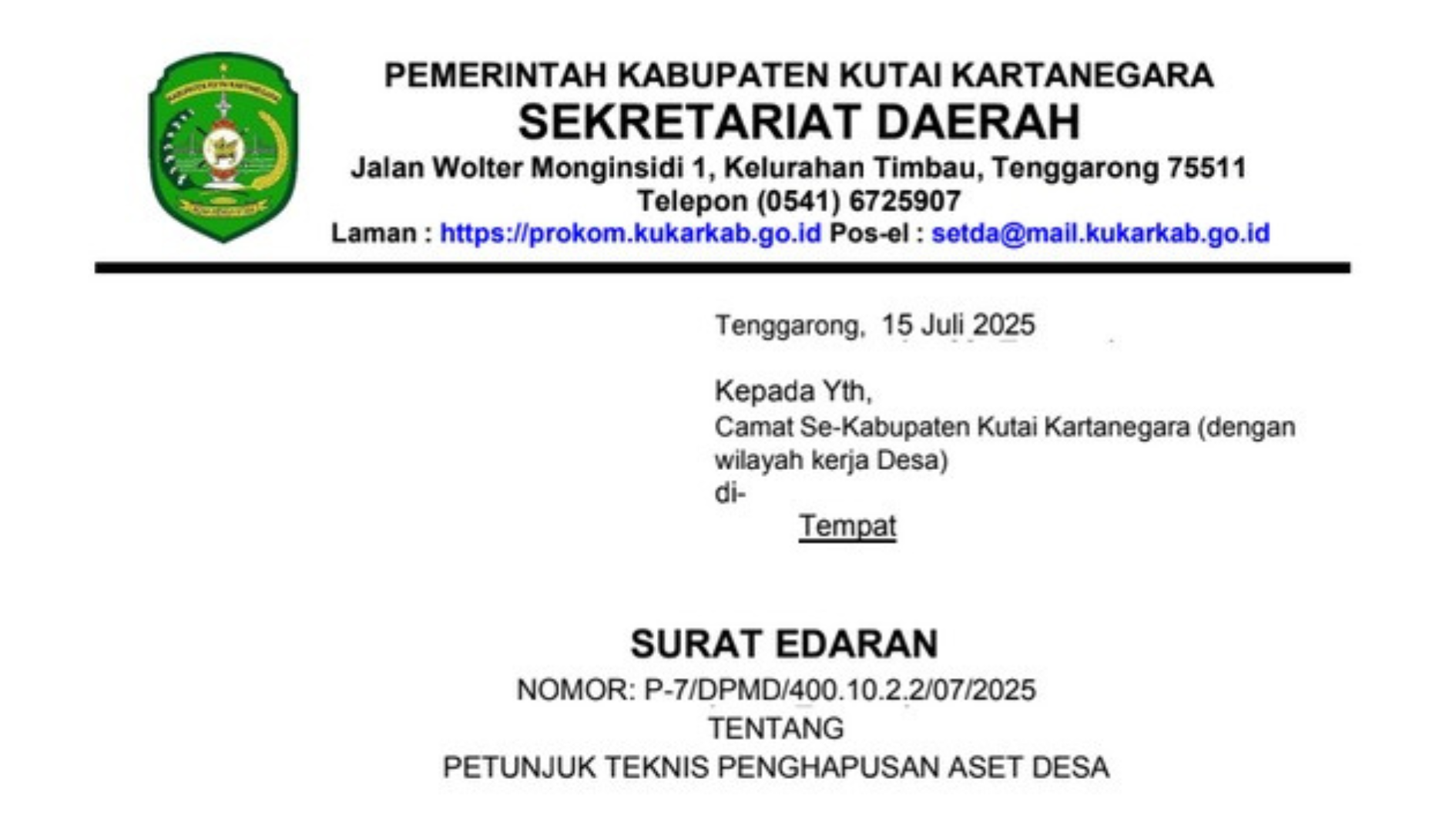 TENGGARONG — Pemerintah Kabupaten Kutai Kartanegara melalui Sekretariat Daerah resmi menerbitkan Surat Edaran Nomor P-7/DPMD/400.10.2.2/07/2025 tentang Petunjuk Teknis Penghapusan Aset […]